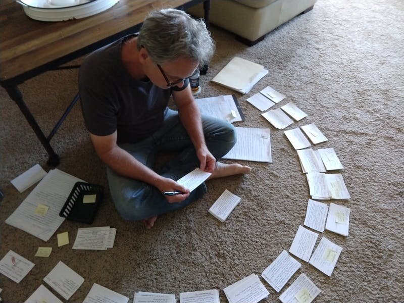 August 8, 2019, planning the CREATE ANYWAY content and chapters. I used a LOT of 3x5 index cards.